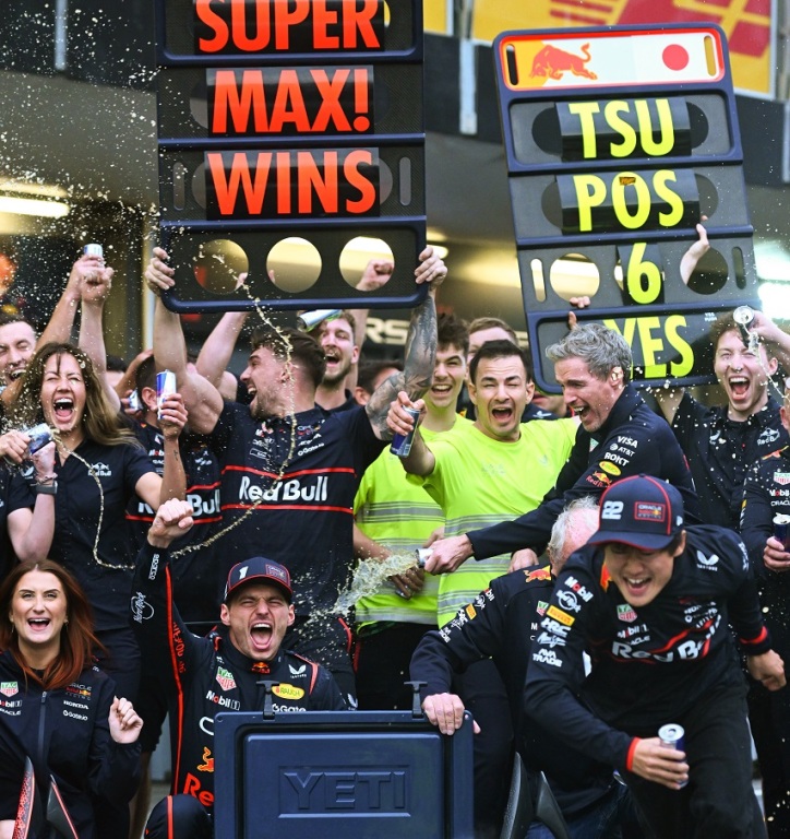 マックス・フェルスタッペンの優勝と角田裕毅の6位を祝うレッドブル