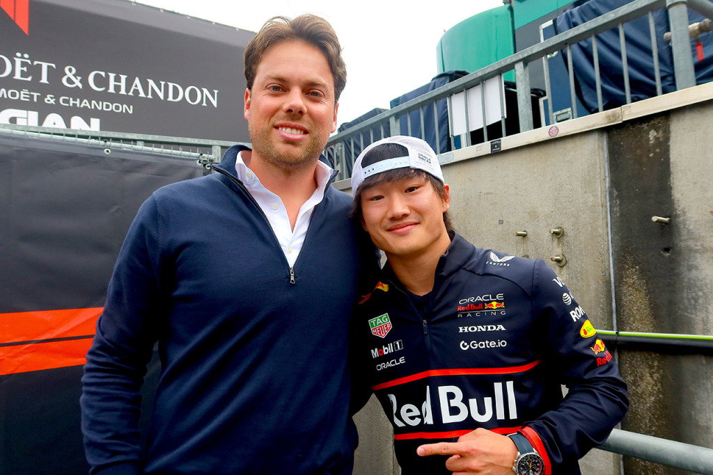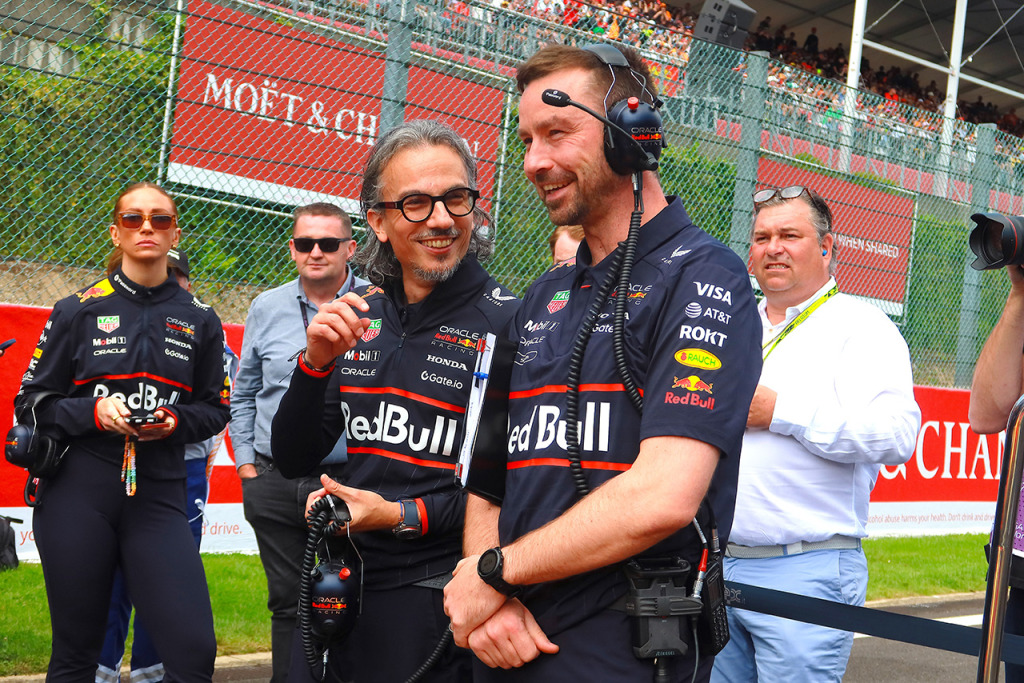 角田のフロア交換をプッシュしたローラン・メキース新代表(写真左)。隣に立つのは代役としてフェルスタッペンのレースエンジニアを務めるサイモン・レニー