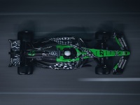 「動きの中で再解釈されたチェッカー要素が、まるでフィニッシュラインで振られている最中に捉えられたかのように、マシンのボディワーク全体を流れるように横切る。これらのダイナミックなパターンは、深いブラックカーボンのテクスチャにシームレスに溶け込み、チームのシグネチャーであるエレクトリックグリーンがアクセントとなっている。その結果、速く、生き生きとした、そしてベガスのネオンの輝きの下で間違いなく映える、躍動感あふれる自信に満ちたルックが完成した」