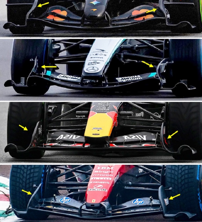 2026年型F1マシンのフロントウイングの比較
