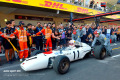 1965年当時をリスペクトしたグレーのシャツを着用したホンダのスタッフ。走行後には角田も笑顔に/現場写真日記特別編