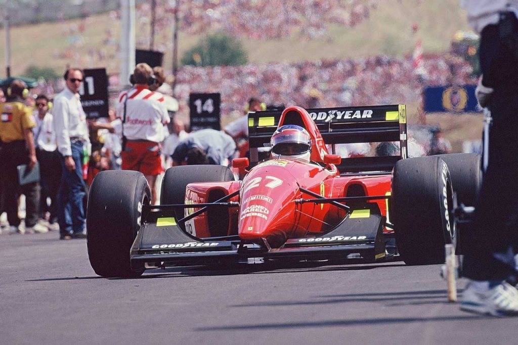 1992年ハンガリーGPでフェラーリ・F92Aをグリッドに進めるジャン・アレジ