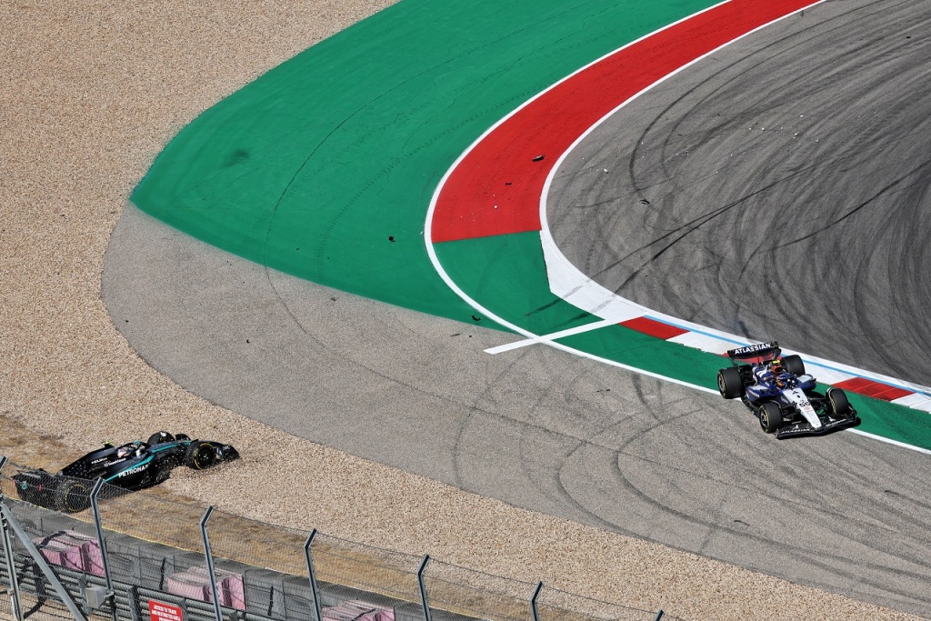 • 2025年F1第19戦アメリカGP カルロス・サインツ(ウイリアムズ)がアンドレア・キミ・アントネッリ(メルセデス)にヒット