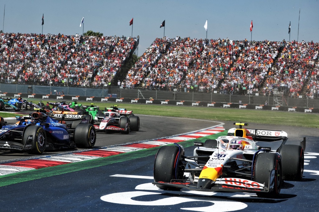 2025年F1第20戦メキシコシティGP決勝 リアム・ローソン(レーシングブルズ)の前でコースを横切るマーシャルたち