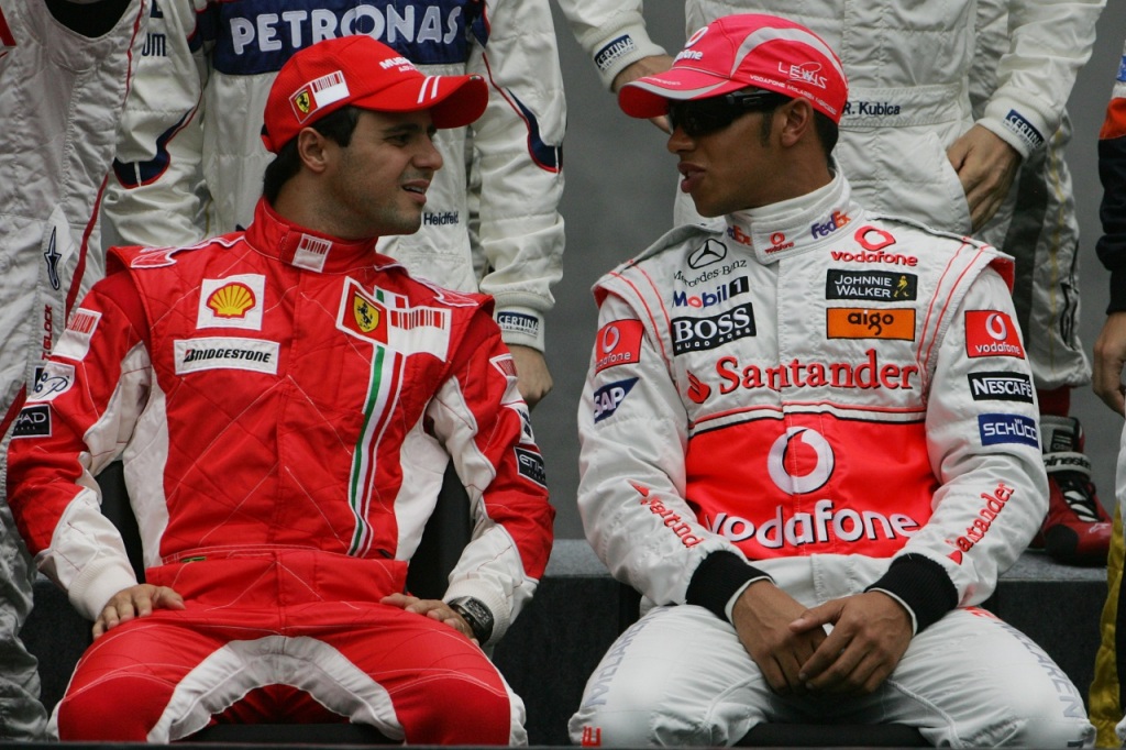 2008年F1ブラジルGP フェリペ・マッサ(フェラーリ)とルイス・ハミルトン(マクラーレン)