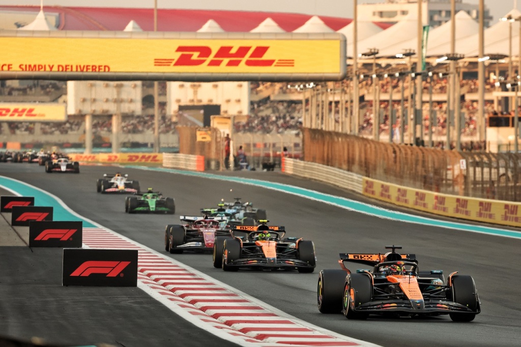 2位オスカー・ピアストリ(マクラーレン)とウイナーのマックス・フェルスタッペン(レッドブル)