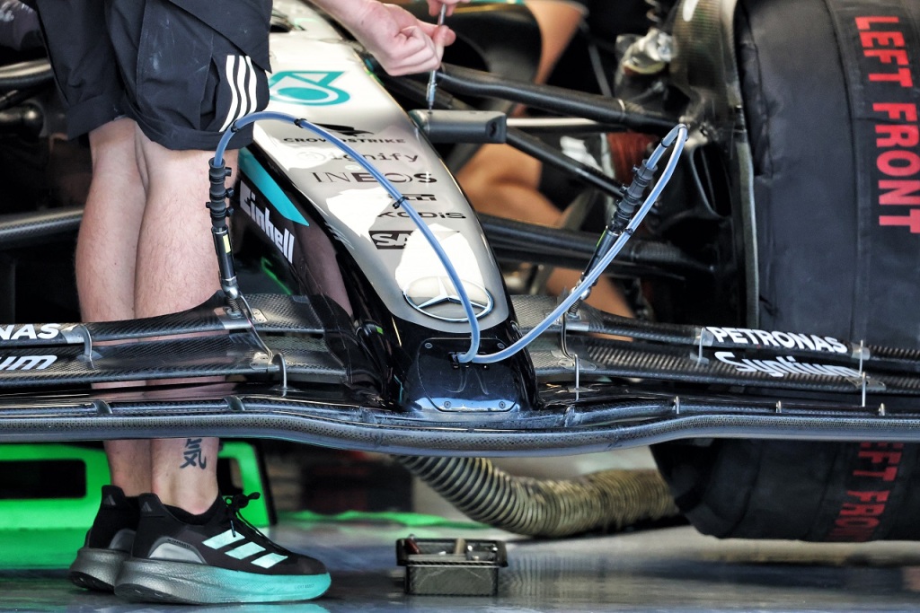 2025年F1アブダビテスト アンドレア・キミ・アントネッリ(メルセデス)が乗るミュールカーに可動式フロントウイング実験版が搭載