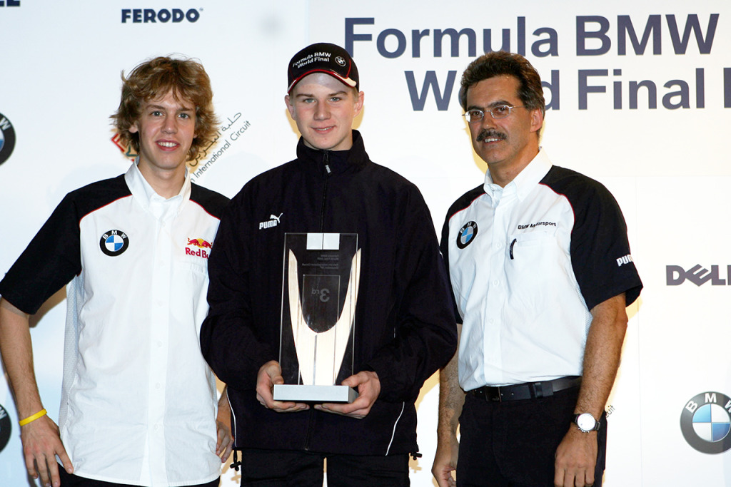 2006-2007シーズンA1GPの年間表彰式ではミハエル・シューマッハーと握手したニコ・ヒュルケンベルグ