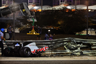 バーレーンでのあの夜、レースは始まったばかりだった。決勝レースの1周目にターン3の出口で他のマシンが接触したのに続いて、グロージャンはガードレールに突っ込んでしまった。その後起きたことは想像を絶するものだった。ガードレールへの衝突でマシンは真っ二つになり、燃料から引火した猛火が砂漠を照らすなか、バリアの反対側に押し出されたコックピットは炎に包まれた。しかしグロージャンは、手に火傷を負ったものの、マシンから脱出することができた。