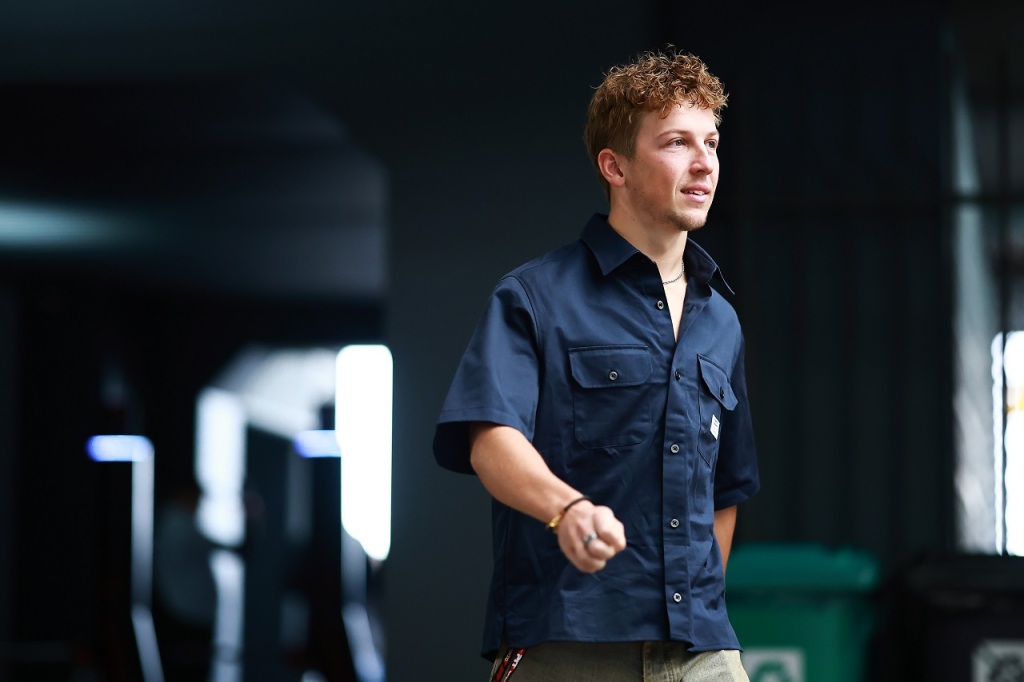 リアム・ローソン(レーシングブルズ)の前でコースを横切るマーシャルたち