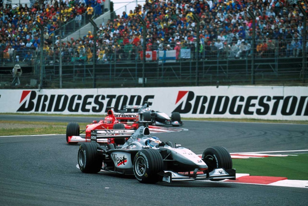 2000年F1第16戦日本GP ミカ・ハッキネン(マクラーレン)を追うミハエル・シューマッハー(フェラーリ)