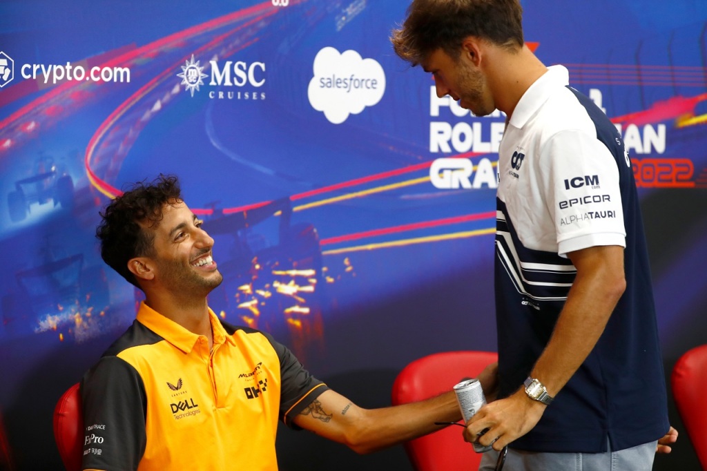 022年F1第14戦ベルギーGP木曜記者会見でのダニエル・リカルド(マクラーレン)とピエール・ガスリー(アルファタウリ)