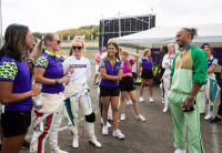 Wシリーズのパドックを訪れたハミルトン。女性ドライバーが他カテゴリーに昇格するには、さらなるサポートが必要だと主張