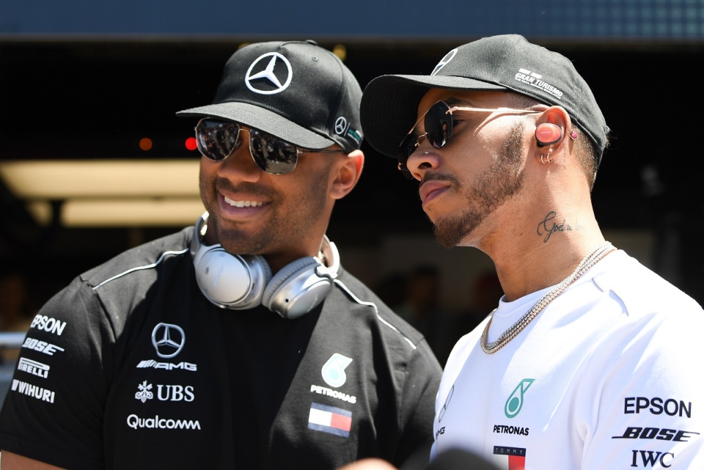 2018年カナダGP ルイス・ハミルトン(メルセデス)とNFL選手ラッセル・ウィルソン