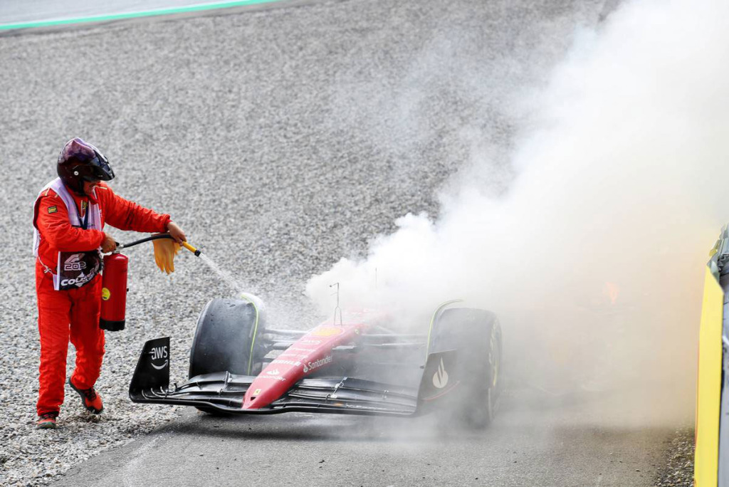 2022年F1第11戦オーストリアGP カルロス・サインツ(フェラーリ)車がPUトラブルで出火