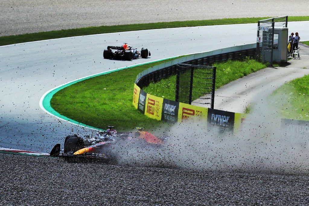2022年F1第11戦オーストリアGP セルジオ・ペレス(レッドブル)がクラッシュしコースオフ