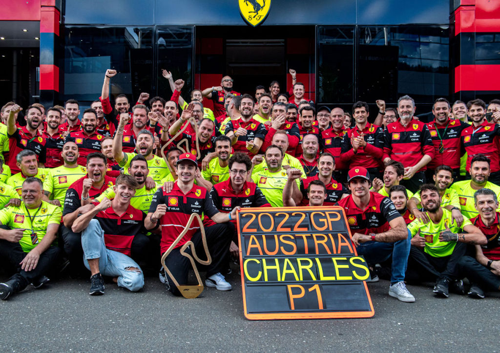 2022年F1第11戦オーストリアGP シャルル・ルクレール(フェラーリ)の勝利を祝うチーム
