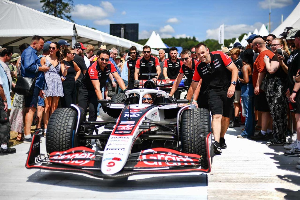 【動画&ギャラリー】ハースがグッドウッド初参加。小松代表は桜デザインのヘルメットでF1マシンのデモラン