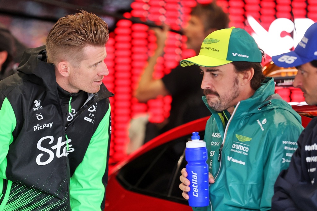 フェルナンド・アロンソ(アストンマーティン)とニコ・ヒュルケンベルグ(キック・ザウバー)