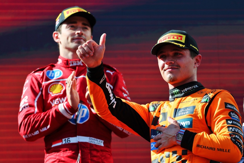 優勝したランド・ノリス(マクラーレン)と3位シャルル・ルクレール(フェラーリ)