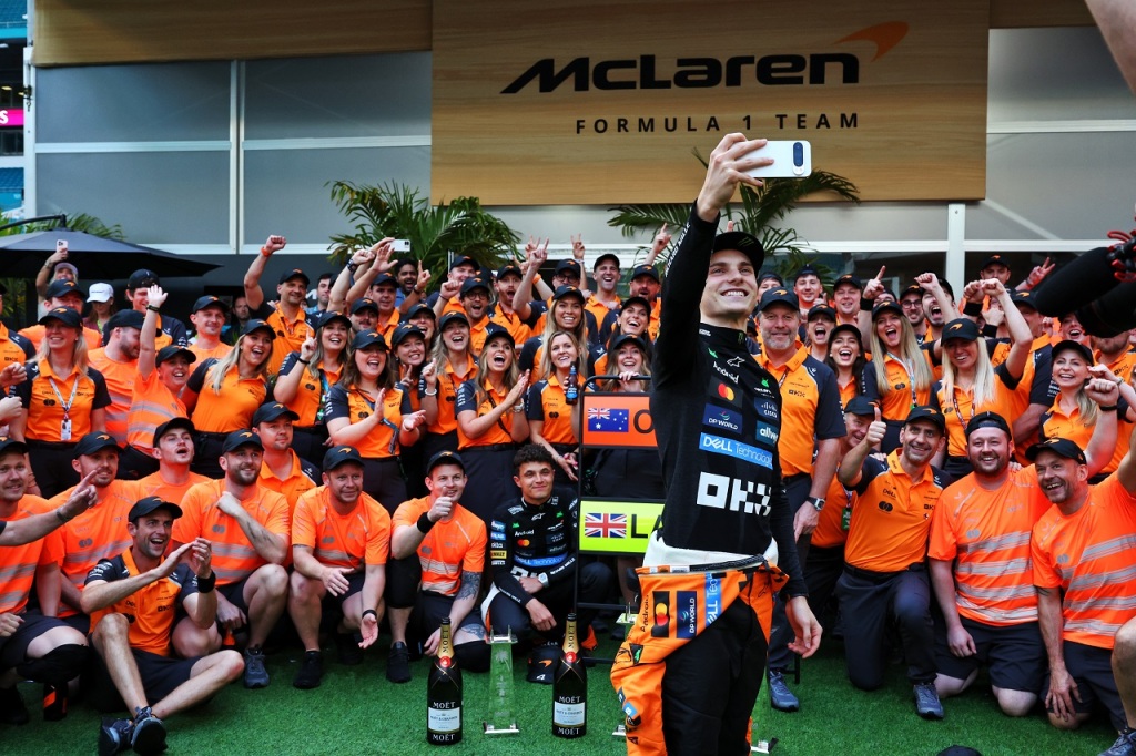 優勝したオスカー・ピアストリと2位ランド・ノリス(マクラーレン)