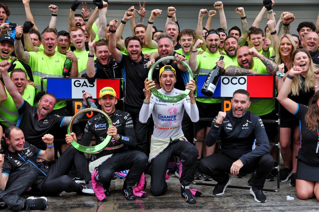 エステバン・オコンとピエール・ガスリー(アルピーヌ)のダブル表彰台を祝うチーム