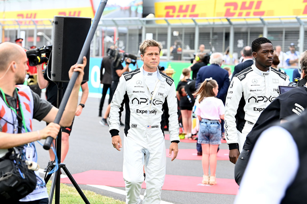 F1映画の共同プロデューサーを務めるハミルトン。内容の信憑性を守るため脚本にも関与、ブラッド・ピットの運転技術も評価