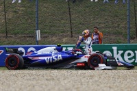 「残念ながら裕毅はQ3最後のアタックで、ターン5の出口でコースからはみ出し、バリアに激しくクラッシュした。その時点までは強力なラップに見えただけに残念だったが、幸い彼は無事だった」