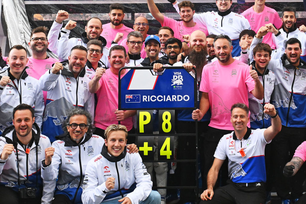 ダニエル・リカルド(RB)の8位入賞を祝うチーム