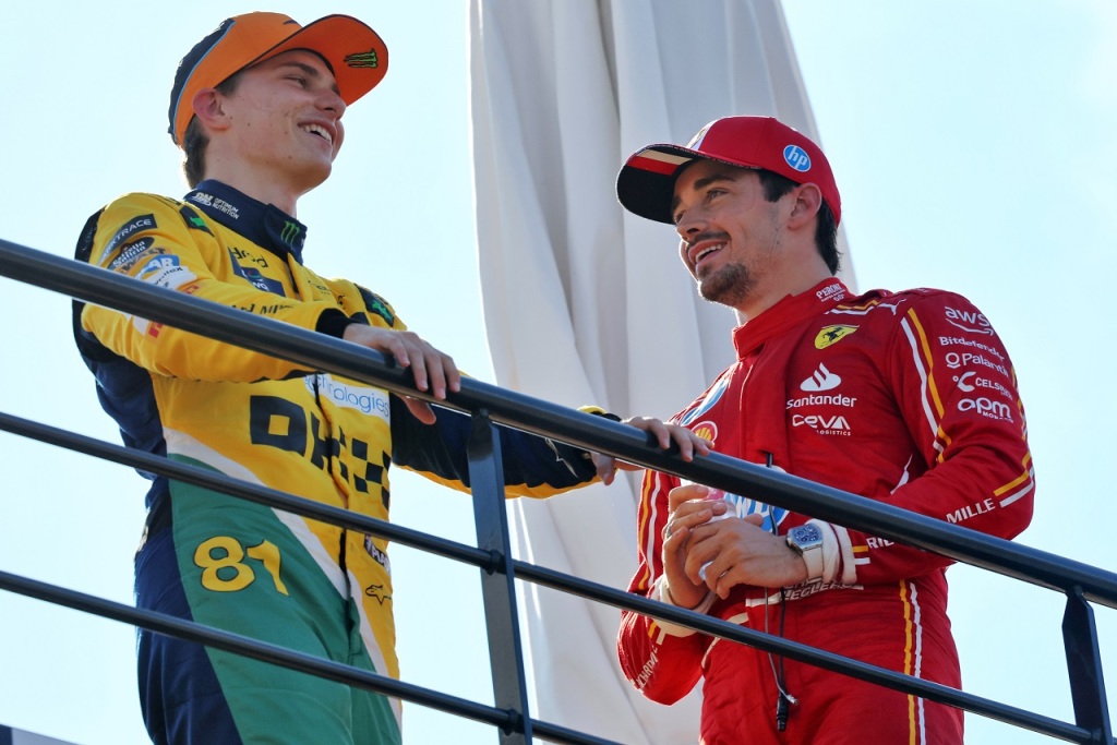 予選2番手のオスカー・ピアストリ(マクラーレン)とポールのシャルル・ルクレール(フェラーリ)
