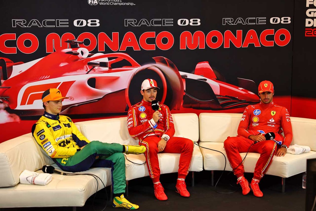 2024年F1第8戦モナコGP予選後会見 PPシャルル・ルクレール(フェラーリ)、2番手オスカー・ピアストリ(マクラーレン)、3番手カルロス・サインツ(フェラーリ)