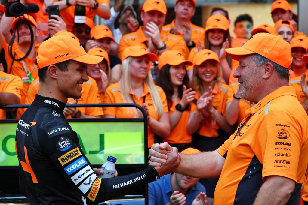F1初優勝のランド・ノリスとCEOザク・ブラウン(マクラーレン)