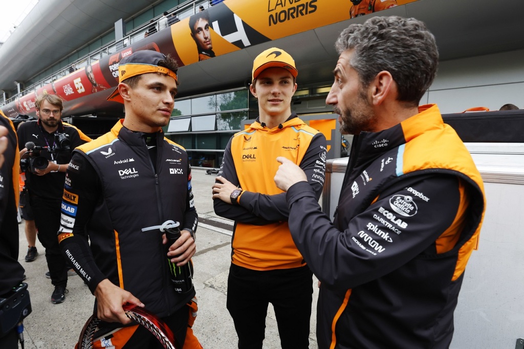 マクラーレンのランド・ノリス、オスカー・ピアストリ、アンドレア・ステラ代表