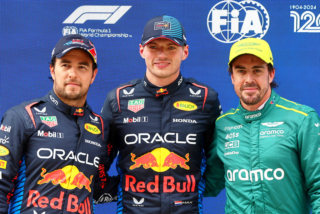2024年F1第5戦中国GP PPのマックス・フェルスタッペン(レッドブル)、予選2番手セルジオ・ペレス(レッドブル)、予選3番手フェルナンド・アロンソ(アストンマーティン)