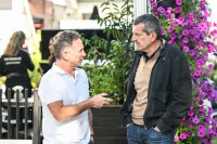 2024年F1第3戦オーストラリアGP 元チーム代表ギュンター・シュタイナーからインタビューを受けるケビン・マグヌッセン(ハース)