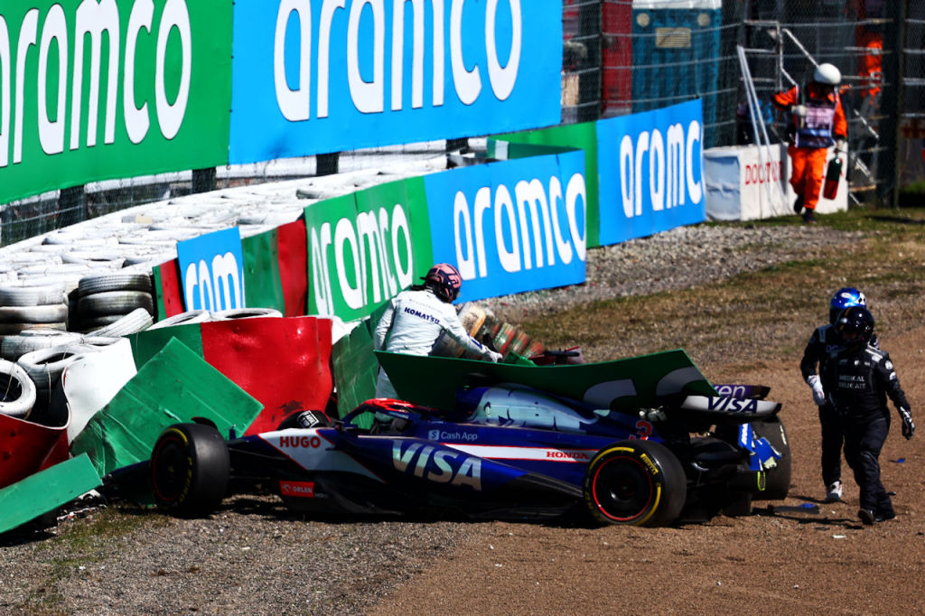 2024年F1第4戦日本GP ダニエル・リカルド(RB)とクラッシュし、ダメージを負ったアレクサンダー・アルボンのウイリアムズFW46