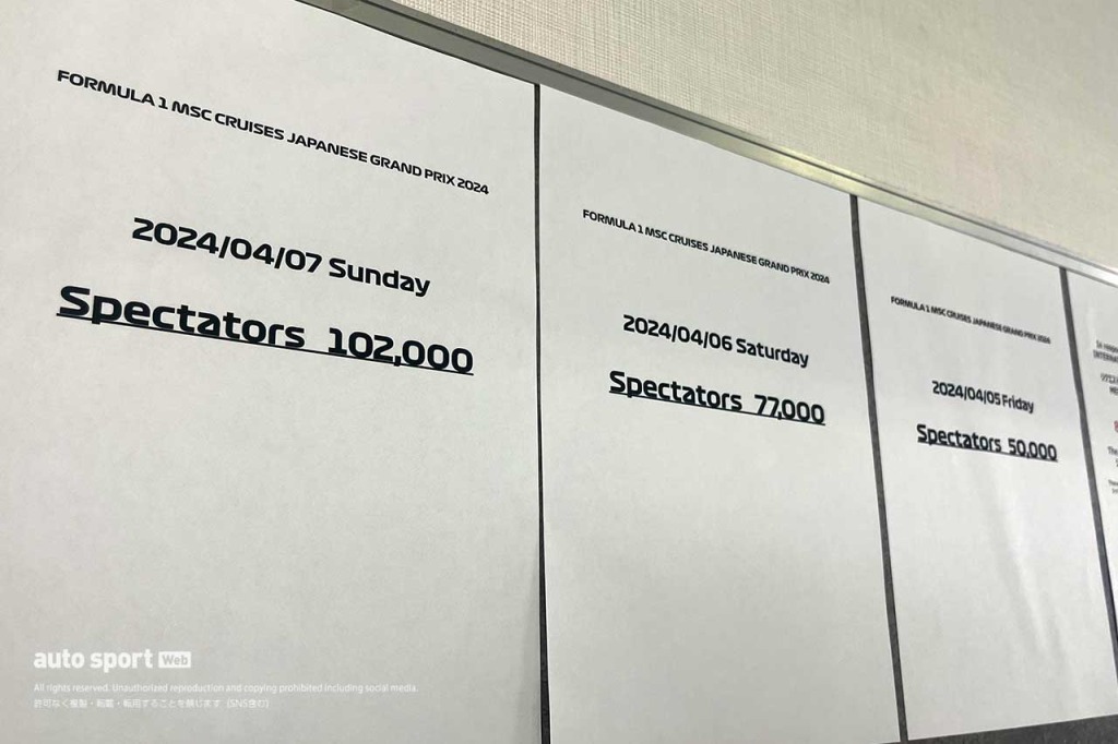 史上初の春開催となった2024年F1日本GPに3日間で22万9000人が来場。秋開催の2023年を上回る
