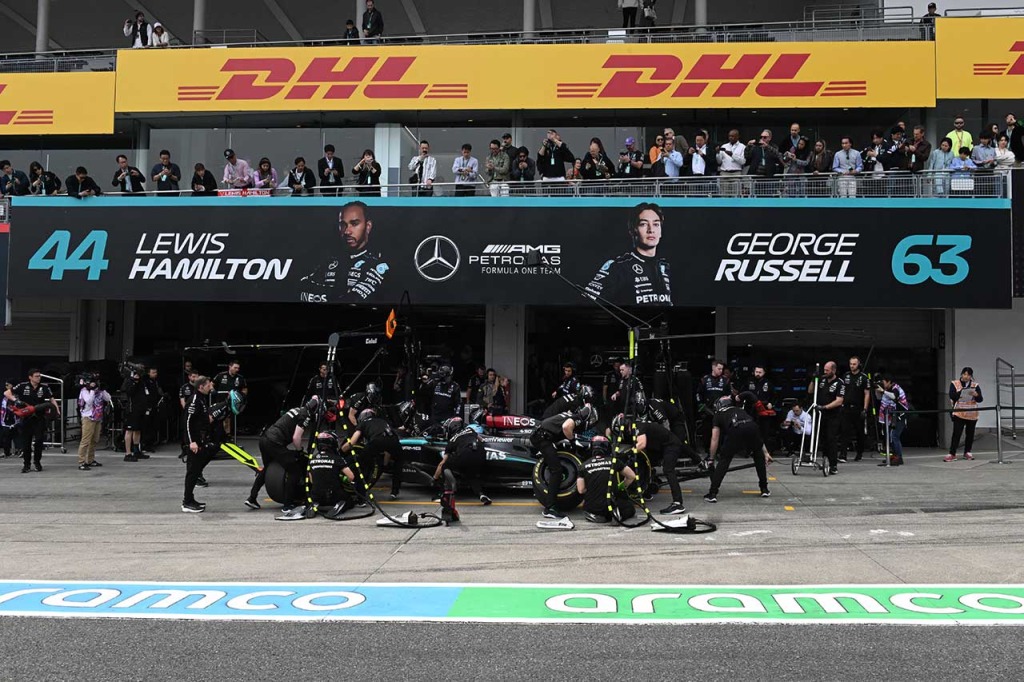 2024年F1第4戦日本GP ピットレーンを走行するジョージ・ラッセル(メルセデス)