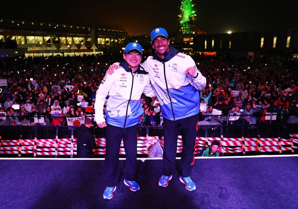 2024年F1第4戦日本GP ファンイベントでの角田裕毅とダニエル・リカルド(RB)