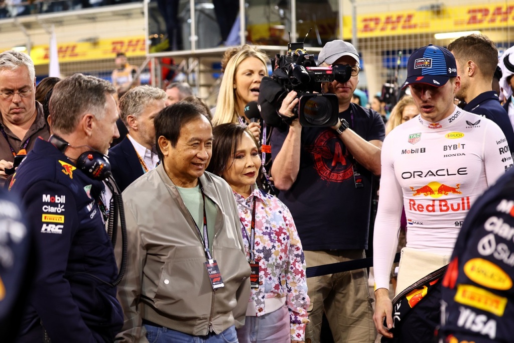 クリスチャン・ホーナー(レッドブルF1代表)、レッドブル社株主チャルーム・ユーウィッタヤー、マックス・フェルスタッペン