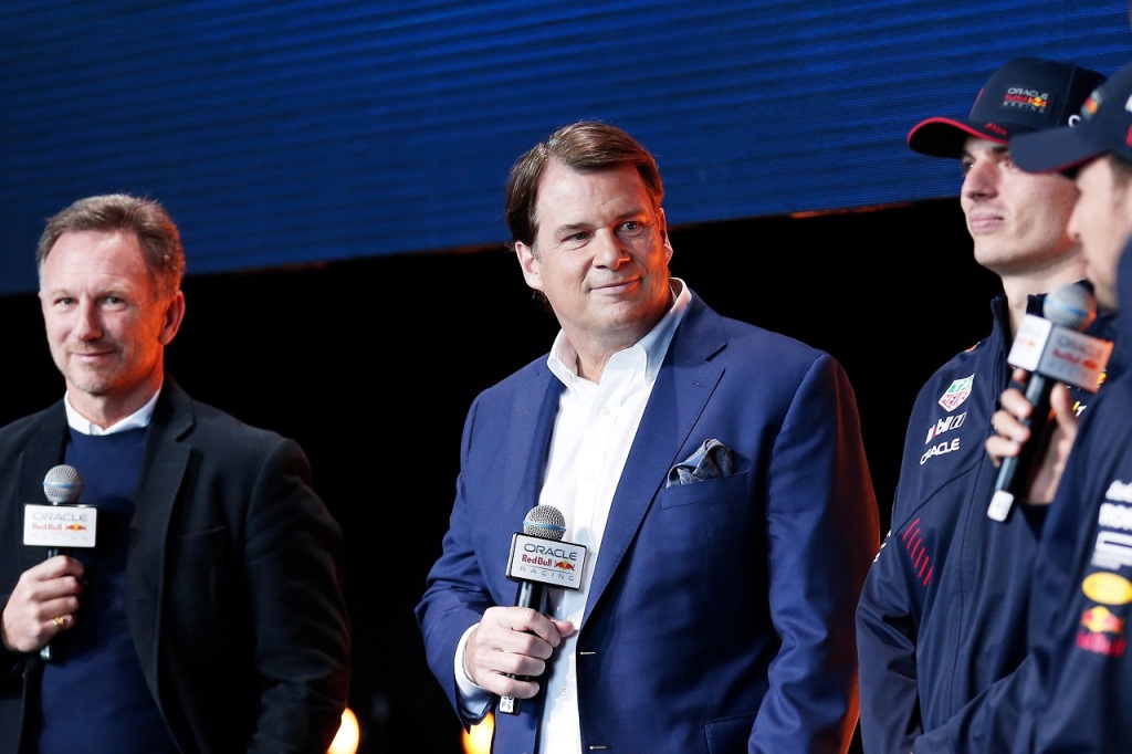 レッドブルの2023年ローンチイベントに登場したフォードの社長兼CEOジム・ファーリー