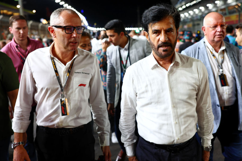 ステファノ・ドメニカリF1 CEO(左)とモハメド・ビン・スライエムFIA会長(右)
