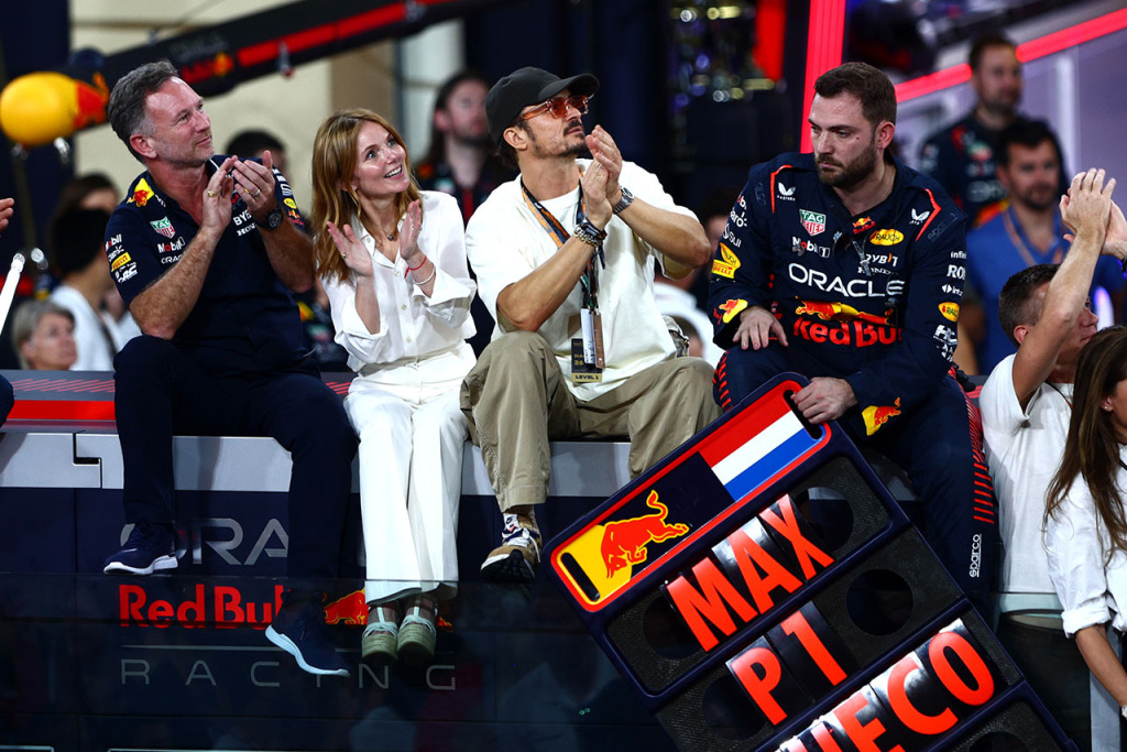 2023年F1第23戦アブダビGP 表彰式を見るクリスチャン・ホーナー代表(レッドブル)と妻ジェリさん