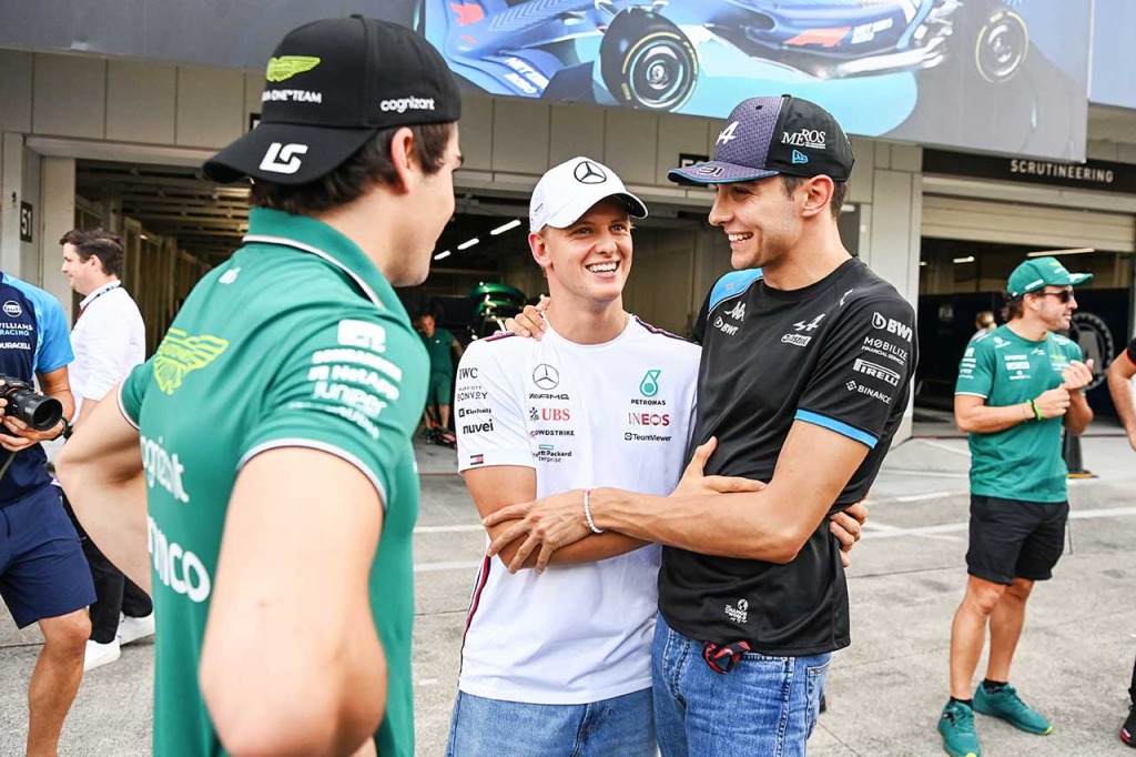 2023年F1日本GP ミック・シューマッハーと戯れるエステバン・オコンとランス・ストロール