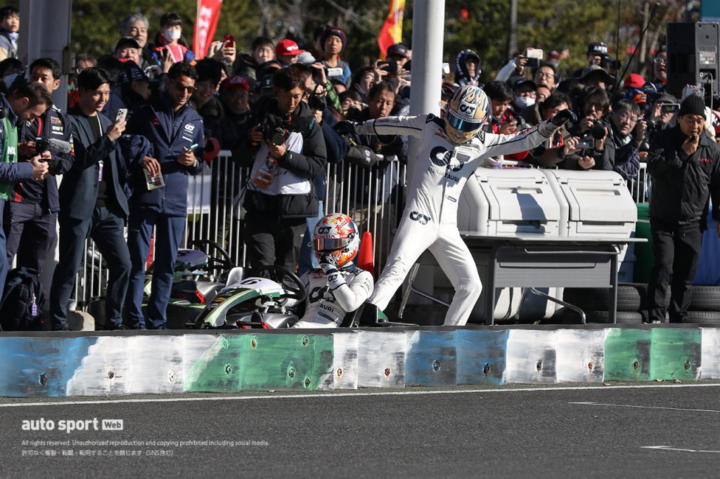 角田がF1デビューマシンでドーナツターン。カート大会で大暴れのリカルドともてぎのファンを盛り上げる
