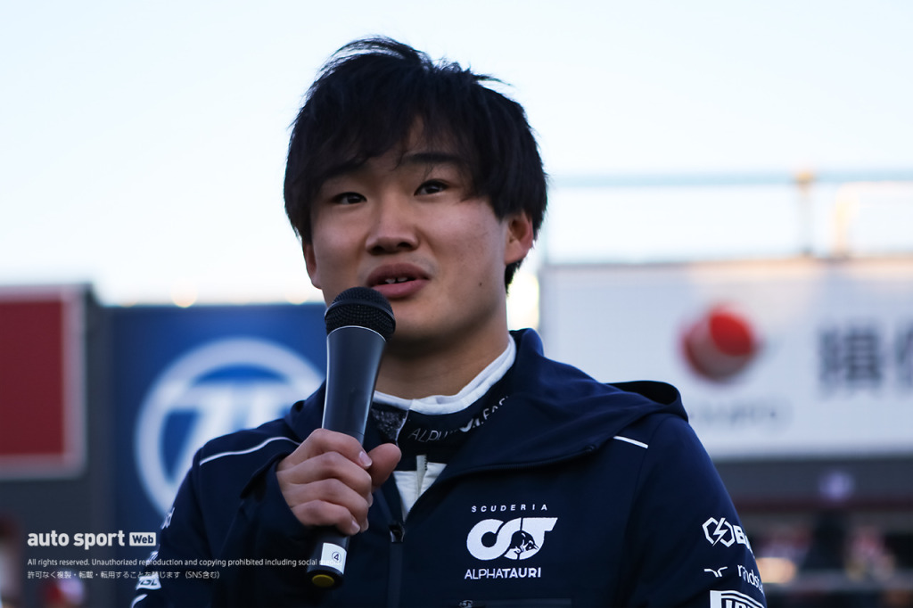 ファンへ感謝のコメントを述べる角田裕毅