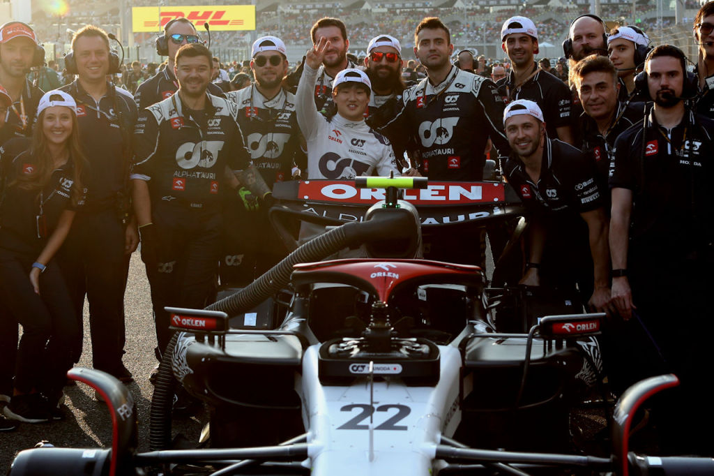2023年F1第23戦アブダビGP 角田裕毅(アルファタウリ)、チームメンバーと記念撮影