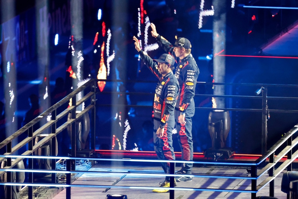 • 2023年F1第22戦ラスベガスGP オープニングセレモニーでのマックス・フェルスタッペンとセルジオ・ペレス(レッドブル)