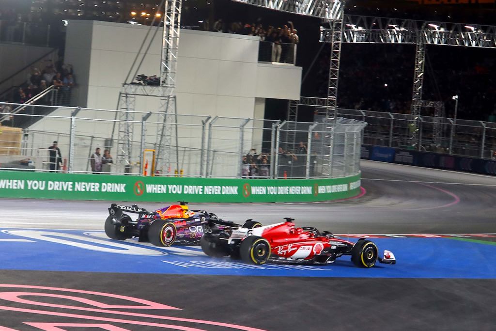 2023年F1第22戦アブダビGP 首位マックス・フェルスタッペン(レッドブル)、2番手シャルル・ルクレール(フェラーリ)、3番手セルジオ・ペレス(レッドブル)