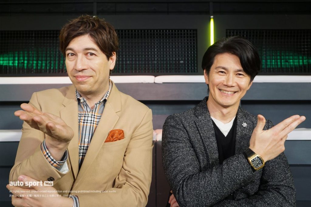 DAZN『WEDNESDAY F1 TIME』の番組MCを務めるサッシャ(左)と中野信治(右)